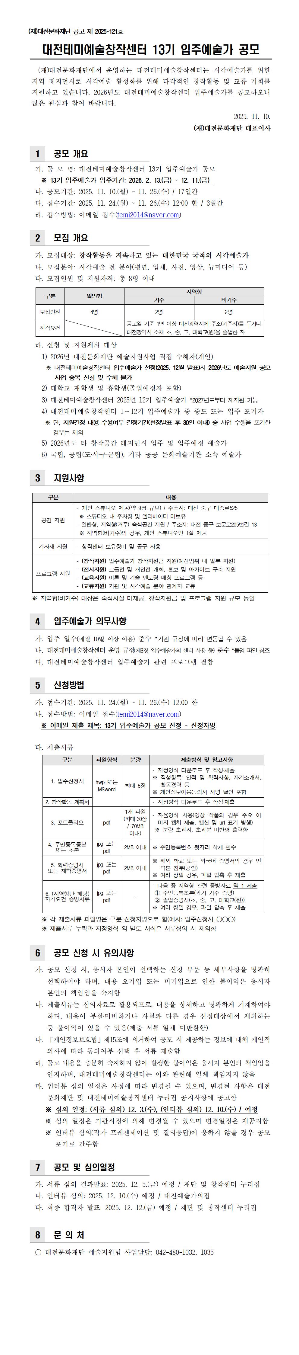 대전테미예술창작센터 13기 입주예술가 공모 공고문.jpg(582 Kb)