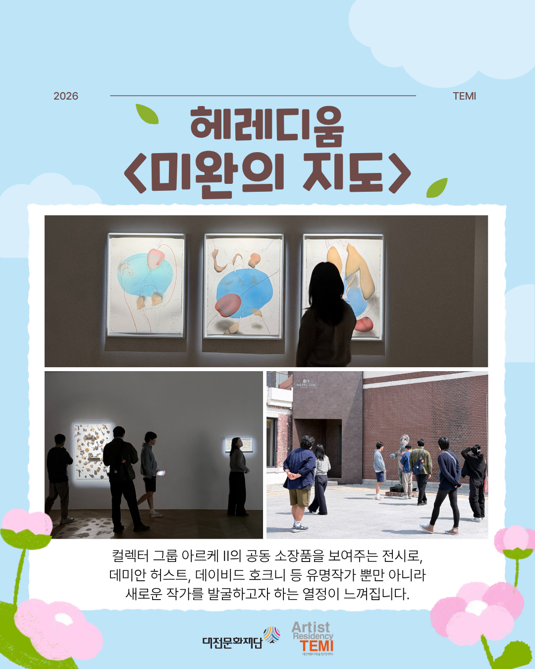 2026년 대전테미옝술창작센터 TEMI 필드트립4월 15일, 13기 입주예술가들가 함께 필드트립을 다녀왔습니다!최종태 전시관, 헤레디움, 대전시립미술관, 이응노 미술관을 방문하여팀장님의 역사 설명도 듣고 다양한 예술품을 접하며 창작 아이디어를 확장시킨 뜻깊은 시간이었습니다 :)5월에 진행될 오픈스튜디오 진행도 기대해주세요