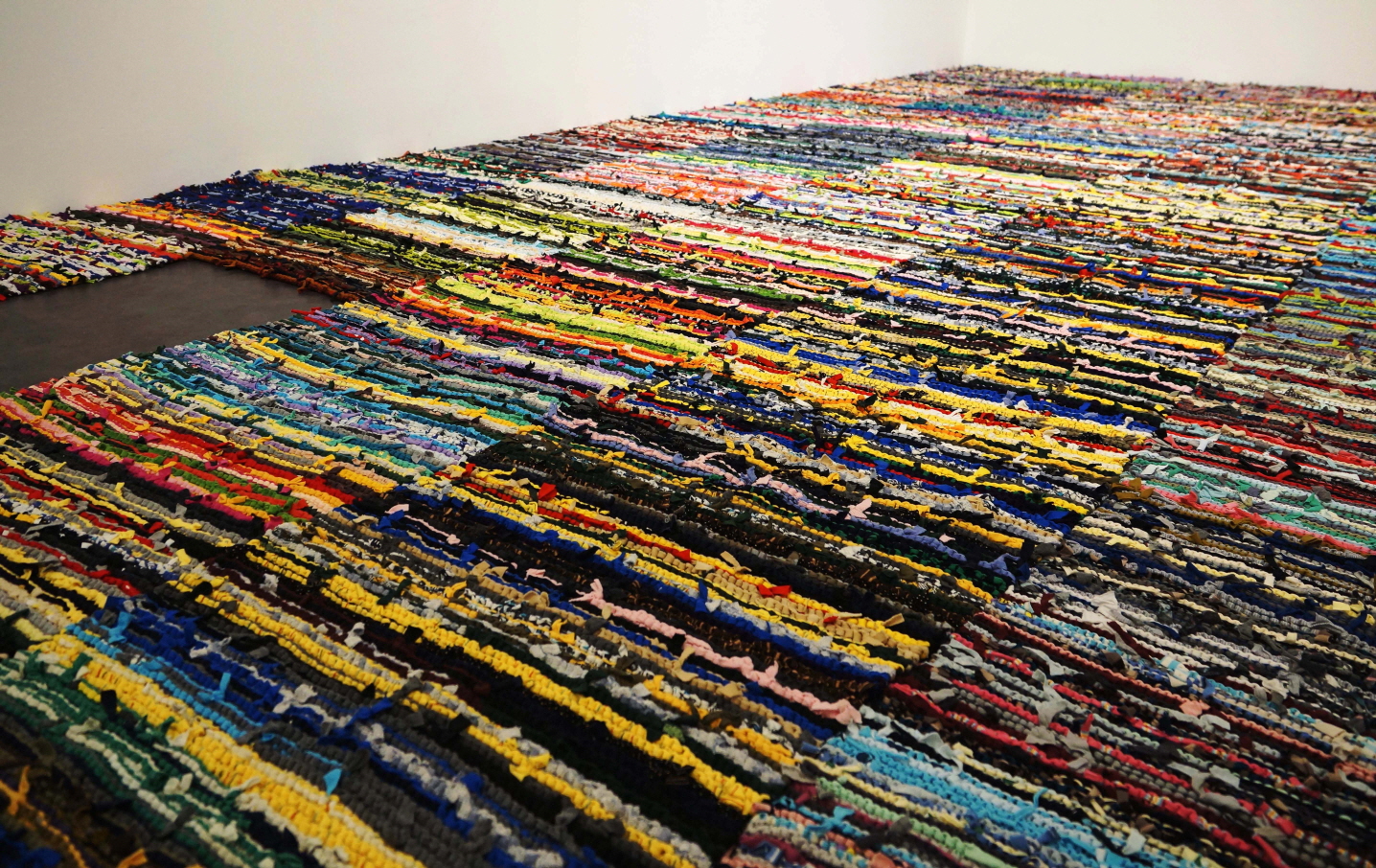 LEE Sunhee (1984~) focuses on finding positive things ultimately needed in life, such as solace, peace of mind, and happiness. She also explores the mechanism of communication and continuously circulating relationships through random objects. Her intention is to examine conflict and ideology hidden behind entangled relationships based on the positions of things that circulate and change endlessly. Everything that had suffered is work that seeks balance in a variety of relationships through the medium of old clothes given by her acquaintances. Knitting used for the work is an activity of entwining everything that coexists in the world, such as the self and others, inside and outside as well as reality and the ideal. Like numerous different colors found in knitwork, all disparate things become tangled up in a natural way to make up the present.