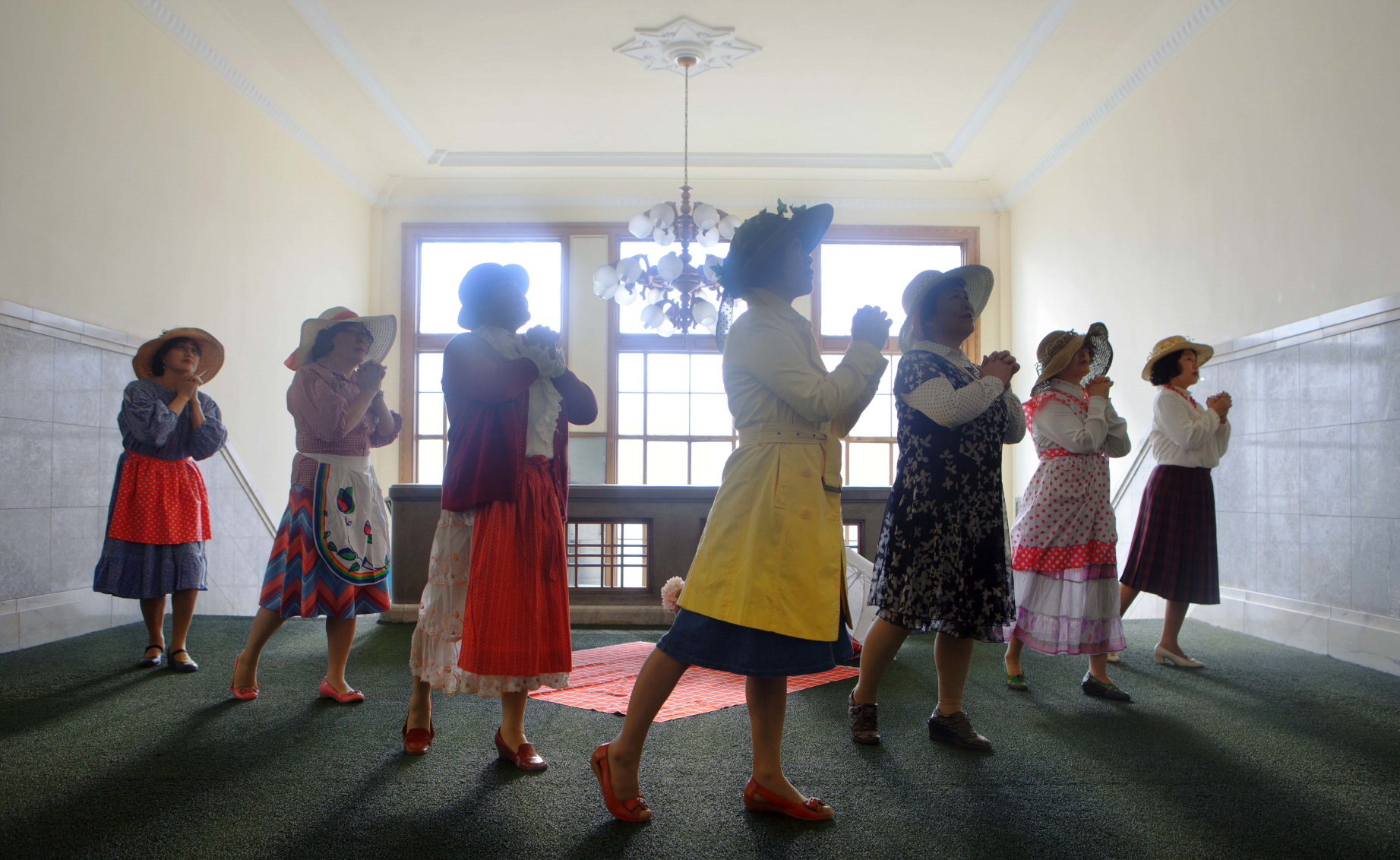 CHO Youngjoo (1978~) refers to the irrationality of Korean society perceived from the viewpoint of Korean women using various media including performance, installation, video and community art. The artist points to things like social customs, patriarchy and toadyism that still affect our daily lives and tries to approach discrimination, a theme that she has pursued for a long time, from a different angle. Art Project with Middle-aged Women is a video dance project carried out in a number of different areas in Korea with the participation of ordinary 50’~60’ women. Through Floral patterned Romance (2014) that took place in Busan based on the concept of elegance, The Divas’ go Out (2015), which played out the image of sexy femme fatales in Osan, and Grand Cuties (2015) that presented cute and lovely images of women in Daejeon, she offers us a chance to look back on the images imposed on women by Korean society and consider gender identity within reality and the society’s demand.