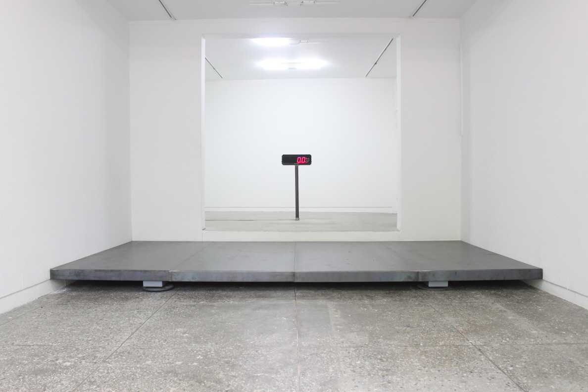 홍기원(1978~)은 확장된 움직임의 영역에서 신체, 공간의 관계를 연구하며, 이를 통하여 지위 및 일시적 가치에 관한 실험을 한다. <Untitled>은 4톤 이상의 무게를 측정할 수 있는 산업용 저울로 주어진 공간에서 발생하는 오브제와 관객 사이의 텐션을 통하여 수동적 태도를 탈피하는 시도 및 주는 것(perceiver)과 받는 것(perceived)의 경계에 대한 질문한다.